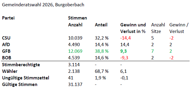 Die GFB ist bei allen kommunalpolitischen Themen Ihr kompetenter Ansprechpartner in Burgoberbach. Unser gemeinsames Ziel ist es, die Gemeinde Burgoberbach für Bürgerinnen und Bürger so attraktiv und so lebenswert wie möglich zu gestalten. Unser Handeln und Entscheiden orientiert sich stets an allen Bürgerinnen und Bürger unserer Gemeinde. Unsere Gemeinderätinnen und Gemeinderäte sind in Ihren Entscheidungen frei und unterliegen keinem Fraktionszwang.